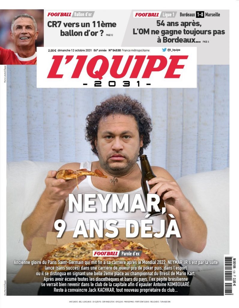 La rédaction du quotidien l’IQUIPE n’est pas passé à coté des envies de retraite internationale de Neymar. C’est le portrait d’un ancien joueur qui n’a pas su maitriser sa fin de carrière que dresse avec humour la rdaction.