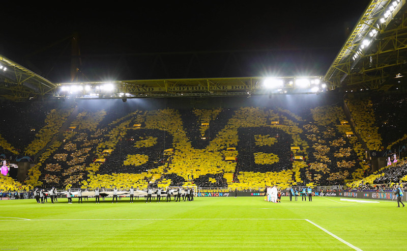 Le fameux “mur jaune” de Dortmund, lors de la venue du PSG, en 2020 (8ème de finale de la Ligue des Champions).