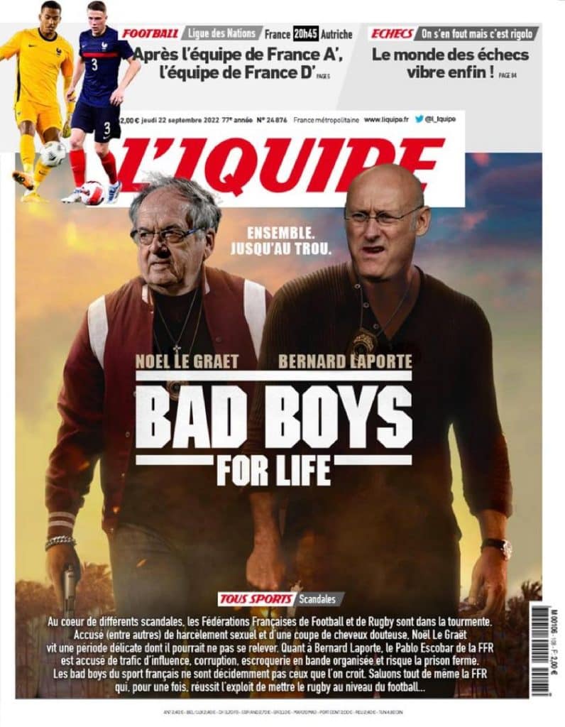 Foot et rugby, tous les deux dans même panier ! Noël Le Graët et Bernard Laporte mettent les deux plus grandes fédérations du sport français au même niveau et L’IQUIPE leur tire son chapeau !