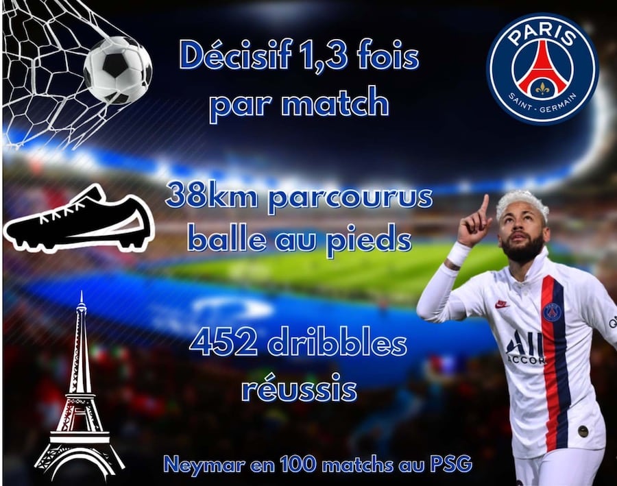 222 millions, c’est la somme déboursée par Paris pour acquérir l’ailier brésilien, une somme astronomique pour un joueur qui l’est tout autant. En 100 matchs, Neymar, c’est 77 buts, 44 passes décisives, décisif 121 fois depuis 2017.