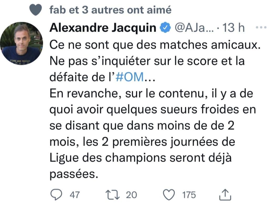 « Ce sont des matchs amicaux, ne pas s’inquiéter sur le sore » écrit ce twittos qui résume le sentiment des supporters. « En revanche, sur le contenu, il y a de quoi avoir des sueurs froides ».