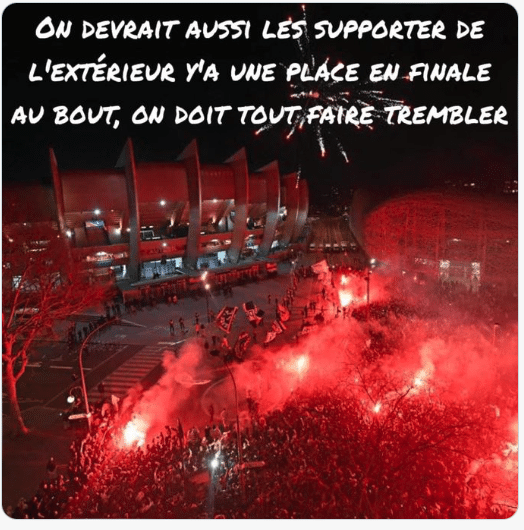 Encore une fois, les alentours du Parc devraient vibrer au rythme du match. En effet, sur les réseaux sociaux, les supporters appellent tout ceux qui n’ont pas obtenu de places à se retrouver autour du stade pour soutenir le PSG. Si ce genre d’attitude a été plusieurs fois aperçu pendant la période de Covid, elle marquera sans doute à jamais l’histoire du club.