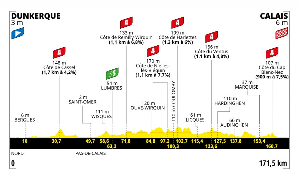 Le profil de course de cette étape nordiste est assez proche de ce qu’ils ont connu au Danemark. L’arrivée est inédite car si Calais a été deux fois ville de départ en 1994 et 2001, c’est la première fois que la ville accueille une arrivée.